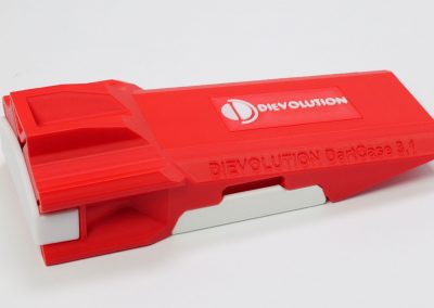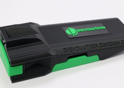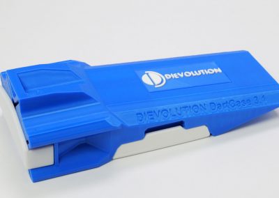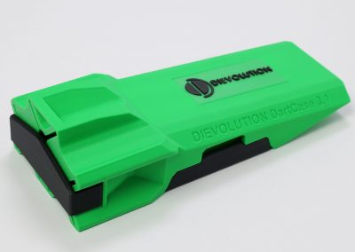 Jedes DartCase trägt ein farblich angepasstes DIEVOLUTION Logo auf dem Deckel. Du kannst optional eine Textplakette mit deinem Namen erwerben und dein DartCase personalisieren.