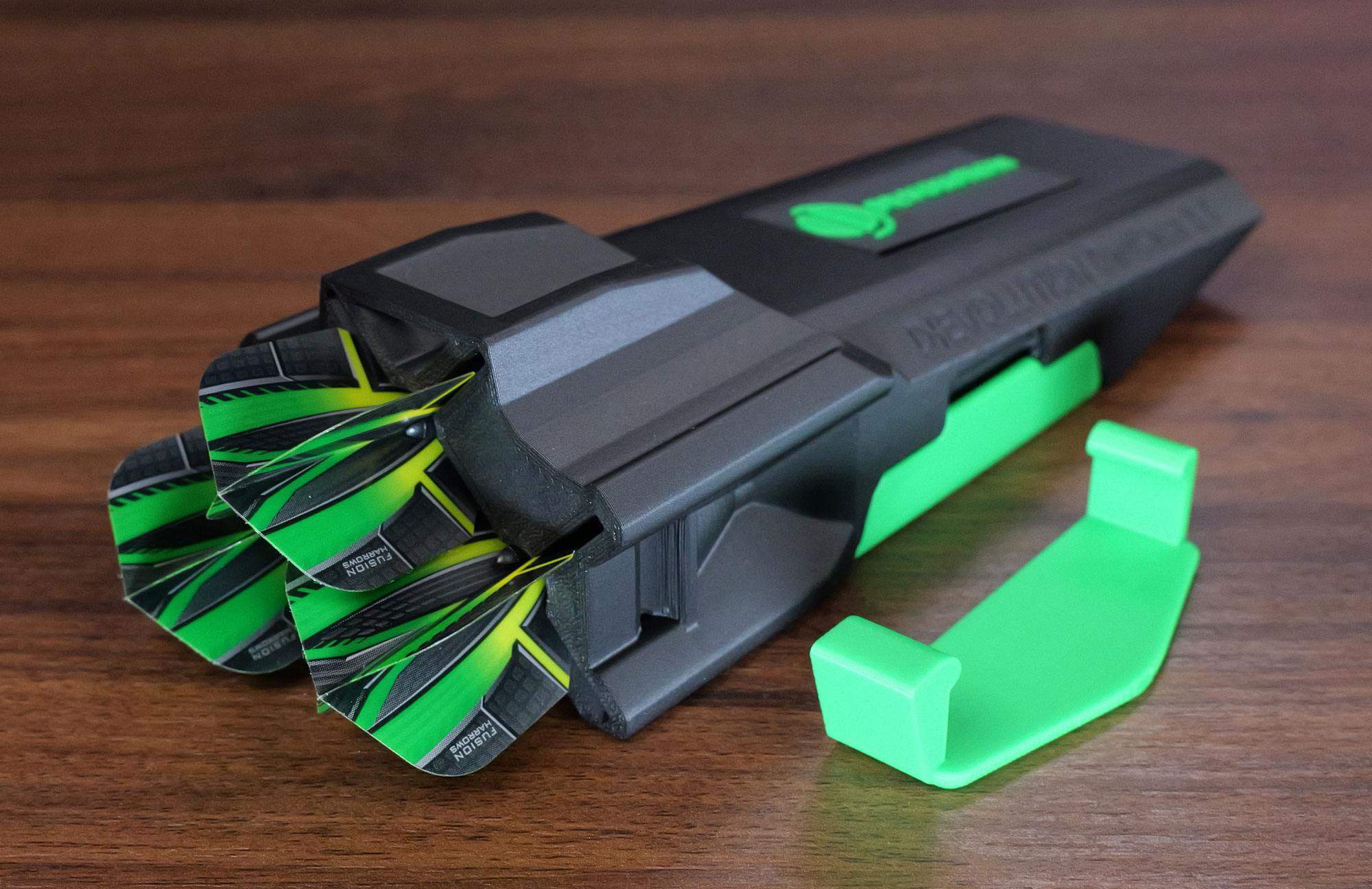 Das DIEVOLUTION DartCase 3.0 überzeugt durch seine unschlagbare Kompaktheit und bietet Platz für 3 Darts sowie Zubehör (Spitzen- und Schaftfach, Halterung für Ersatzflights). Es ist geeignet für alle Soft- und Steel-Darts bis 15 cm Länge (Flight bis Spitze). Hergestellt aus robustem Kunststoff und mithilfe modernster 3D-Druck-Verfahren, ist das DartCase 3.0 ideal für den sicheren Transport deiner Darts.